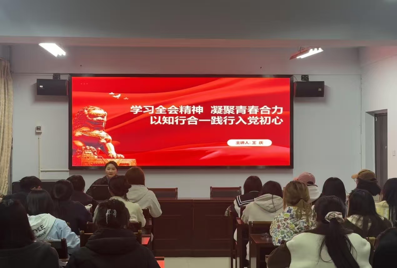 学院党委书记王庆以“学习全会精神 凝聚青春合力,以知行合一践行入党初心”为题进行授课,系统解读了党的二十届四中全会精神,强调要将学深悟透全会精神与学习贯彻习近平法治思想结合起来,切实增强学习的政治自觉、思想自觉和行动自觉,始终走在前,作表率。王庆向参训学员提出三点要求:一要筑牢信仰之基,做初心使命的生动诠释者;二要精进专业之能,做法治建设与基层治理的生力军;三要永葆勤思笃进之志,做自我提升的自觉践行者,提高政治站位,强化使命担当,树牢法治思维,提升专业素养,为“十五五”时期建设更高水平法治中国作出贡献、挺膺担当。