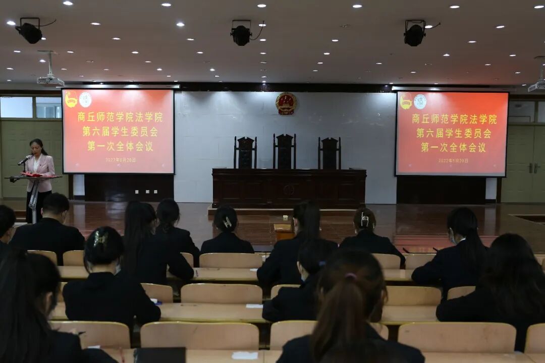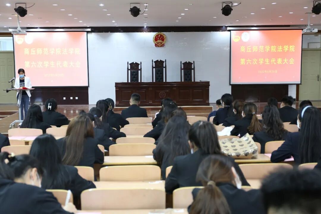 5月20日,法学院第六次学生代表大会在行方楼模拟法庭举行。法学院党委副书记郭静,团委书记刘丹,辅导员李孟宇、韩华,校学生会主席团成员武文斌,法学院学生会主要学生干部和学生代表参加会议。