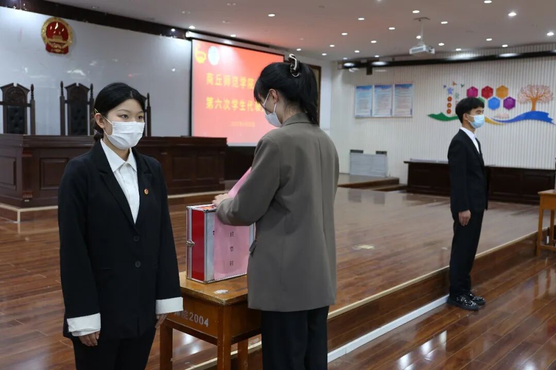 在选举阶段,按照大会议程和选举要求,采用差额选举方式,通过无记名投票选举产生法学院第六届学生委员会委员21名、商丘师范学院第六次学生代表大会法学院代表9名,圆满完成此次会议全部议程。