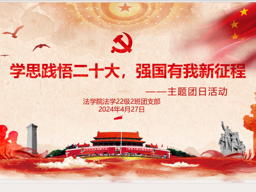 为深入学习贯彻党的二十大精神,激励广大团员青年砥砺奋进、实干担当,展现新时代团员青年的青春风貌,4月27日,法学院21个团支部开展了“学思践悟二十大 强国有我新征程”主题团日活动。