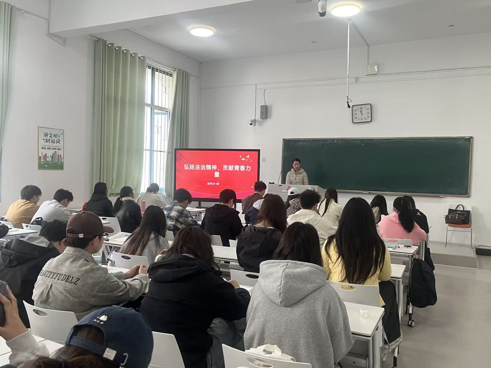 本次主题团日活动的开展旨在进一步弘扬法治精神,提升法治素养,进一步筑牢法治信仰,激发同学们的爱国情怀和责任担当,为法治中国建设贡献青春力量。
