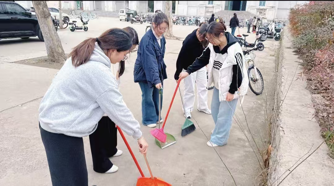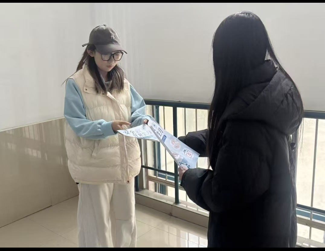 学院同步开展 “校园清洁我先行” 实践活动,同学们自带清洁工具,分工协作擦拭教学楼楼梯扶手、清理公共区域杂物垃圾,为打造整洁优美的校园环境贡献力量;志愿者分队深入教学楼、校园主干道等地,向过往同学分发安全卫生宣传单页,将安全卫生知识精准传递到校园的每一个角落。