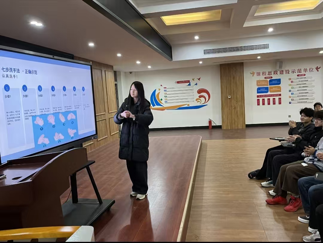 活动现场特设实操示范区,学院志愿者化身 “健康指导员”,围绕春季传染病防控开展专项科普,结合春季气温多变、病菌易传播的季节特点,详细讲解流感、诺如病毒等常见传染病的传播途径、典型症状与科学预防措施,让同学们精准掌握防护要点。