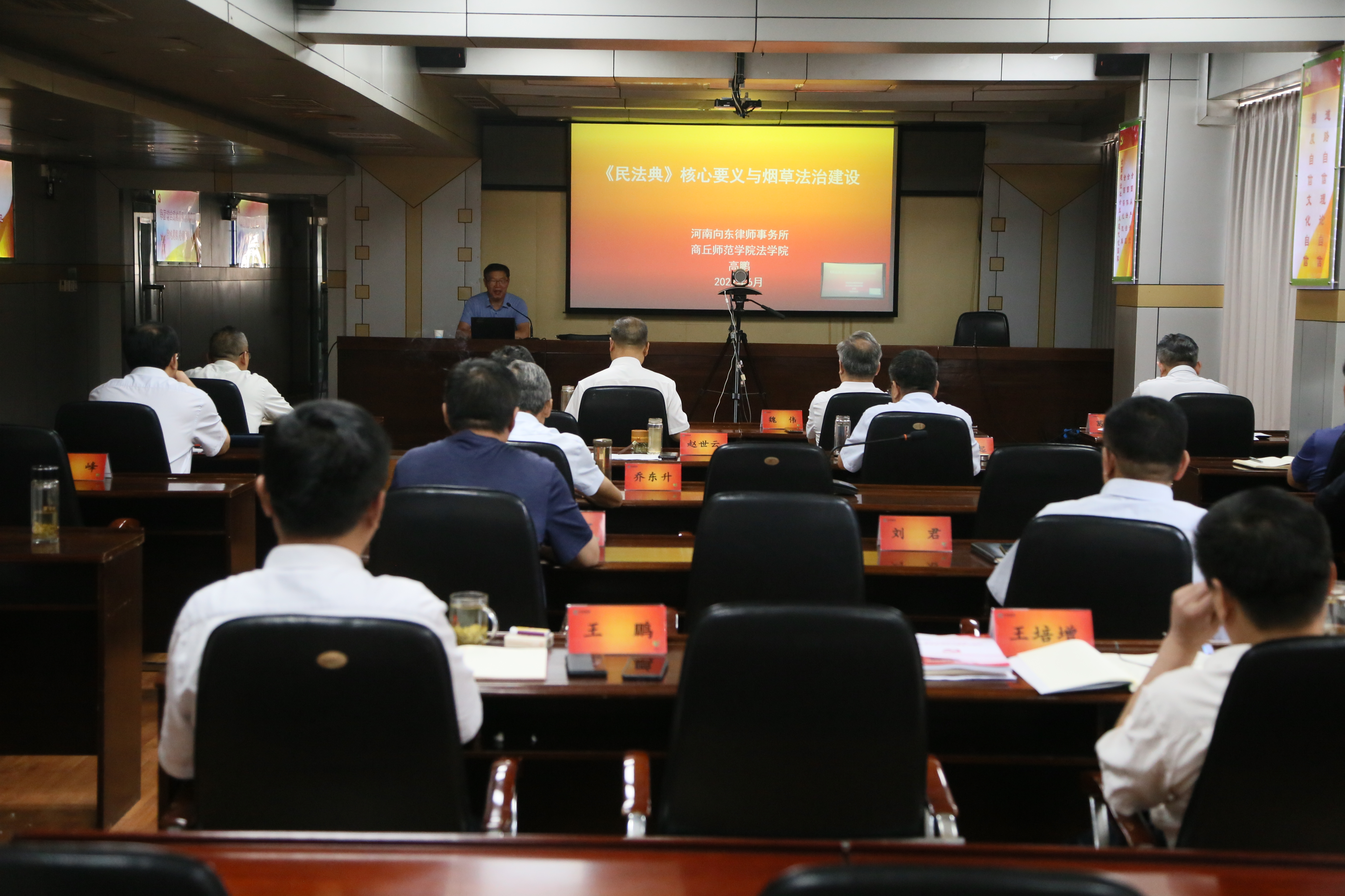今年是《烟草专卖法》实施30周年,为营造尊法、学法、用法的良好氛围,6月30日,我院高鹏老师应商丘市烟草专卖局邀请,进行了题为“《民法典》核心要义与烟草法治建设”的专题讲座。讲座线上线下同步进行,局机关领导干部,区县局、直属单位全体员工参加了讲座。