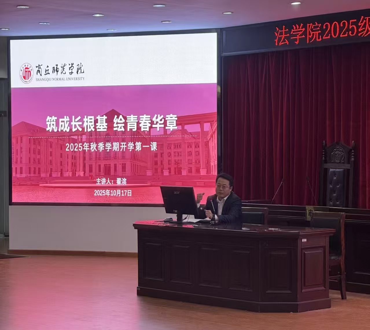 10月17日,副校长翟滨以“筑成长根基 绘青春华章”为题,为法学院2025级新生上了一堂阐述深刻、内容丰富、鲜活生动的思政课。
