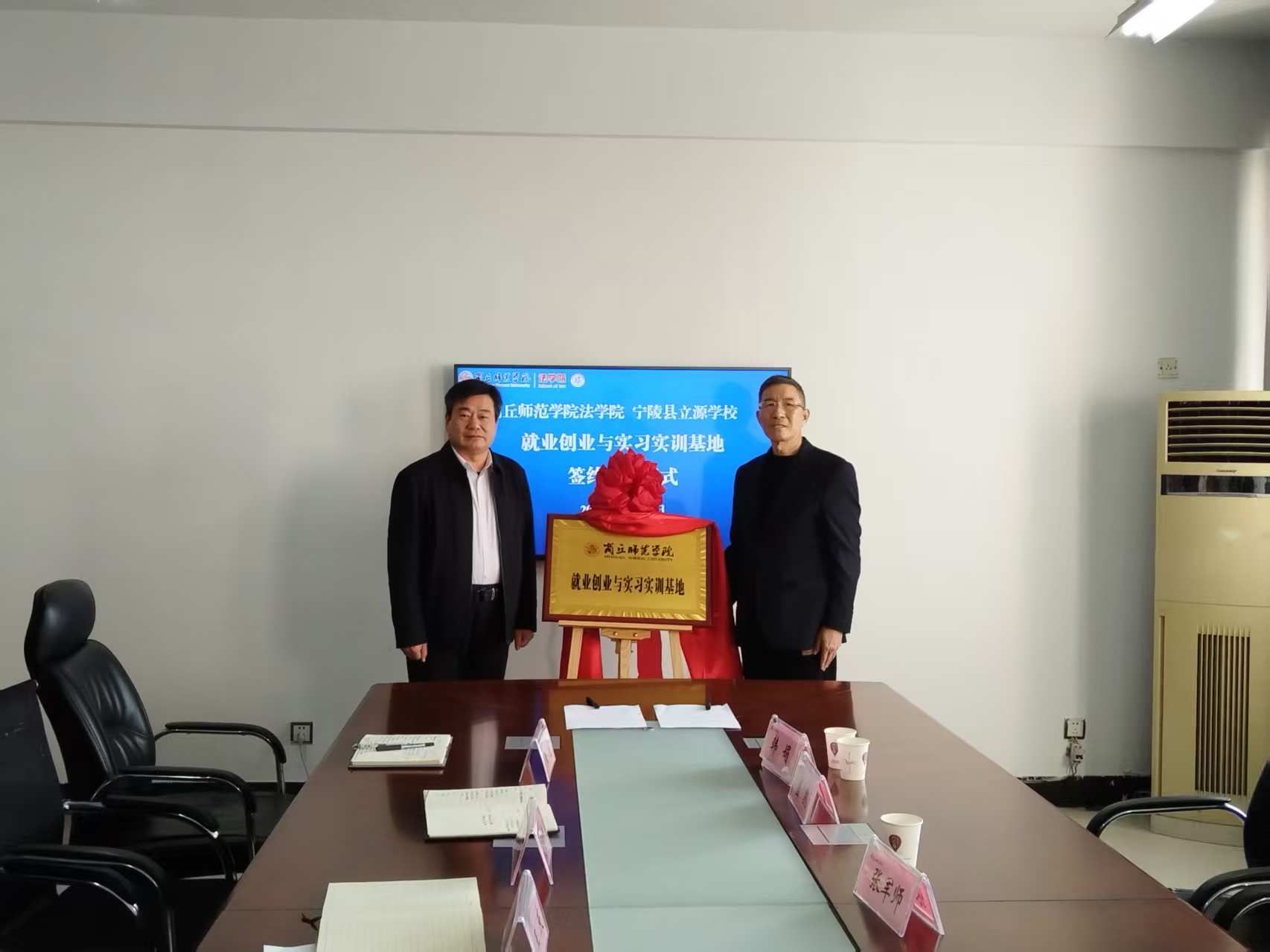 为深化校地合作、推进产教融合,切实提升学生专业实践能力与就业竞争力,11月10日,法学院与宁陵县立源学校举行就业实习实训基地签约暨揭牌仪式。出席仪式的有立源学校张军师校长一行五人及法学院领导班子成员、教师代表。签约仪式由法学院党委书记王庆主持。