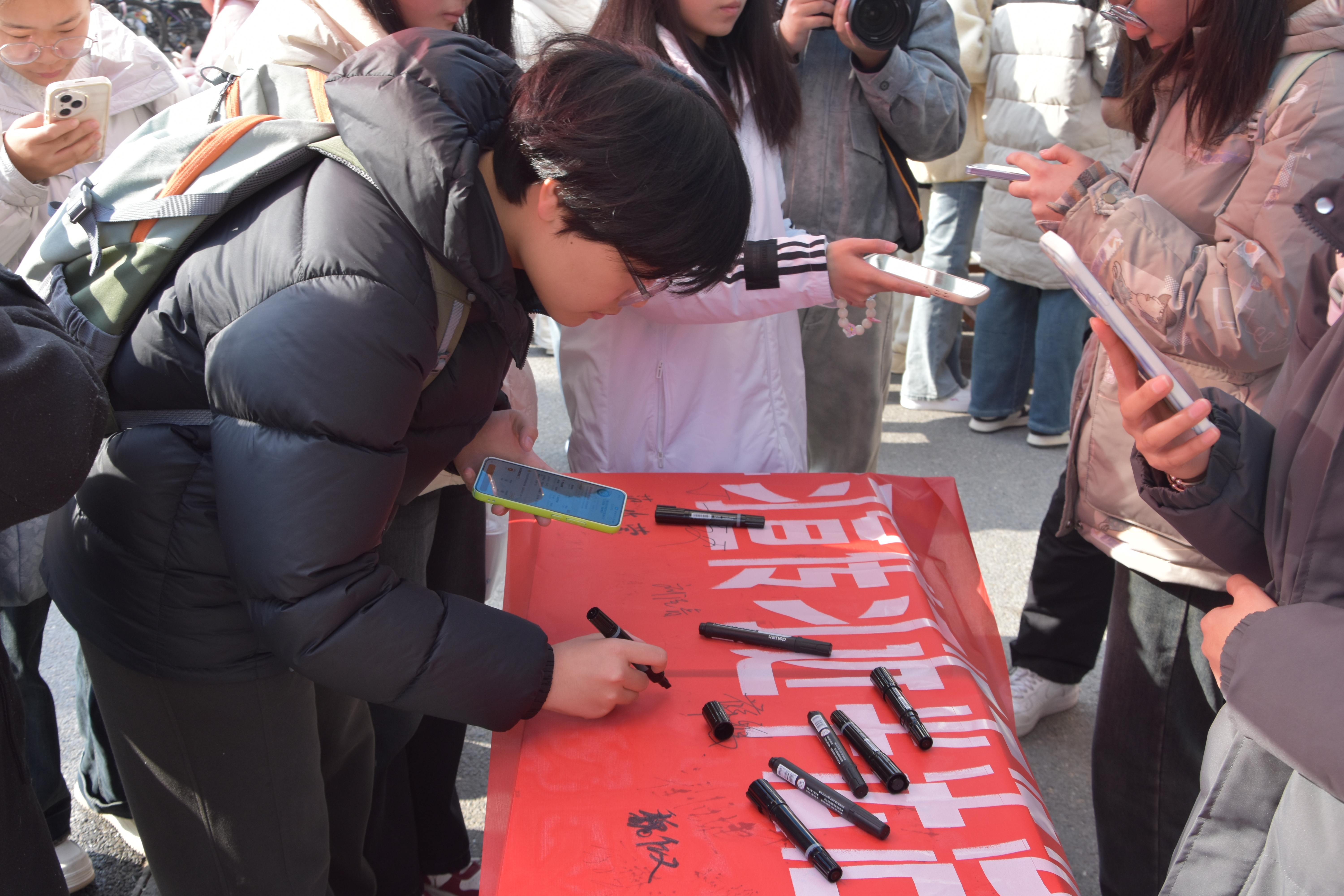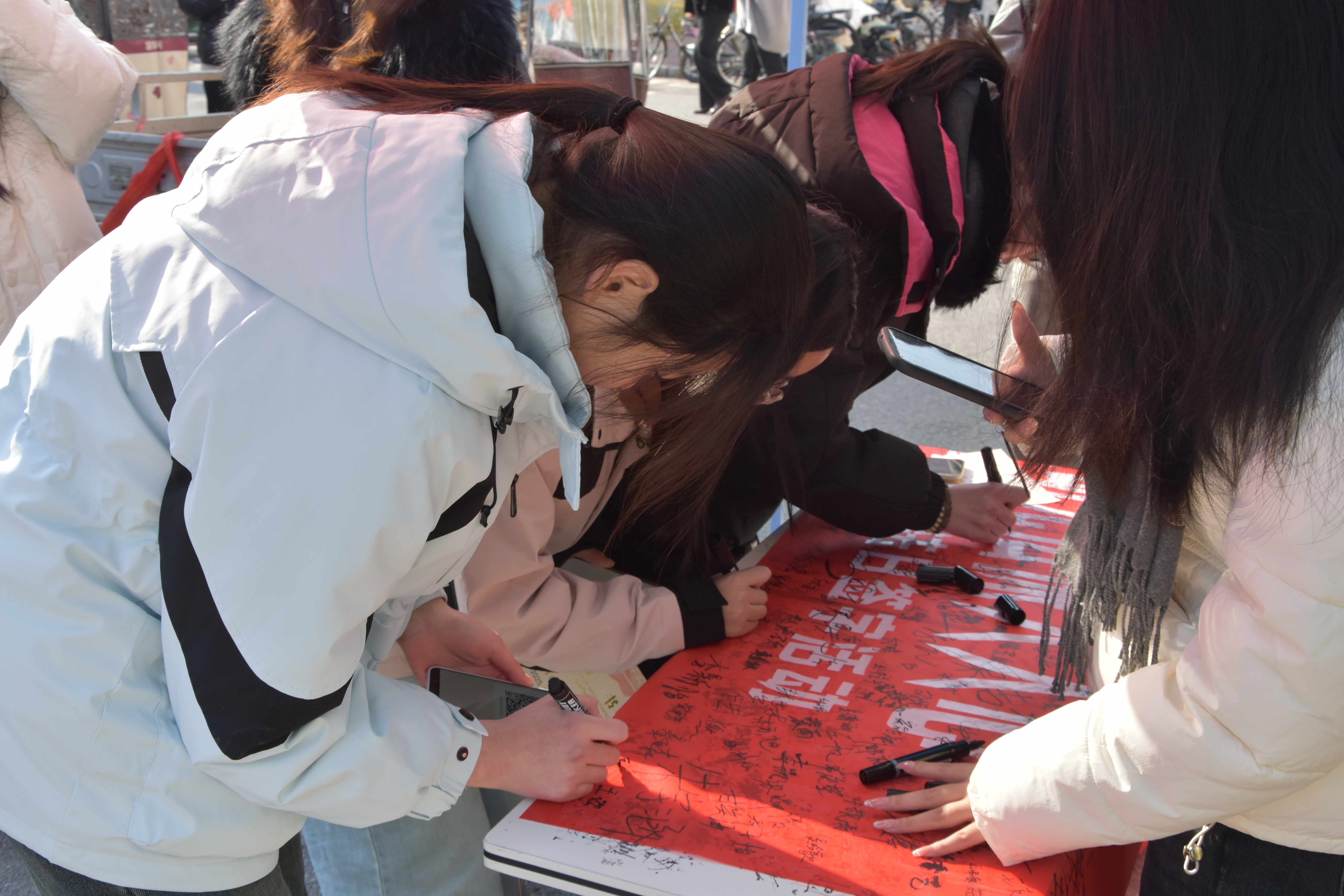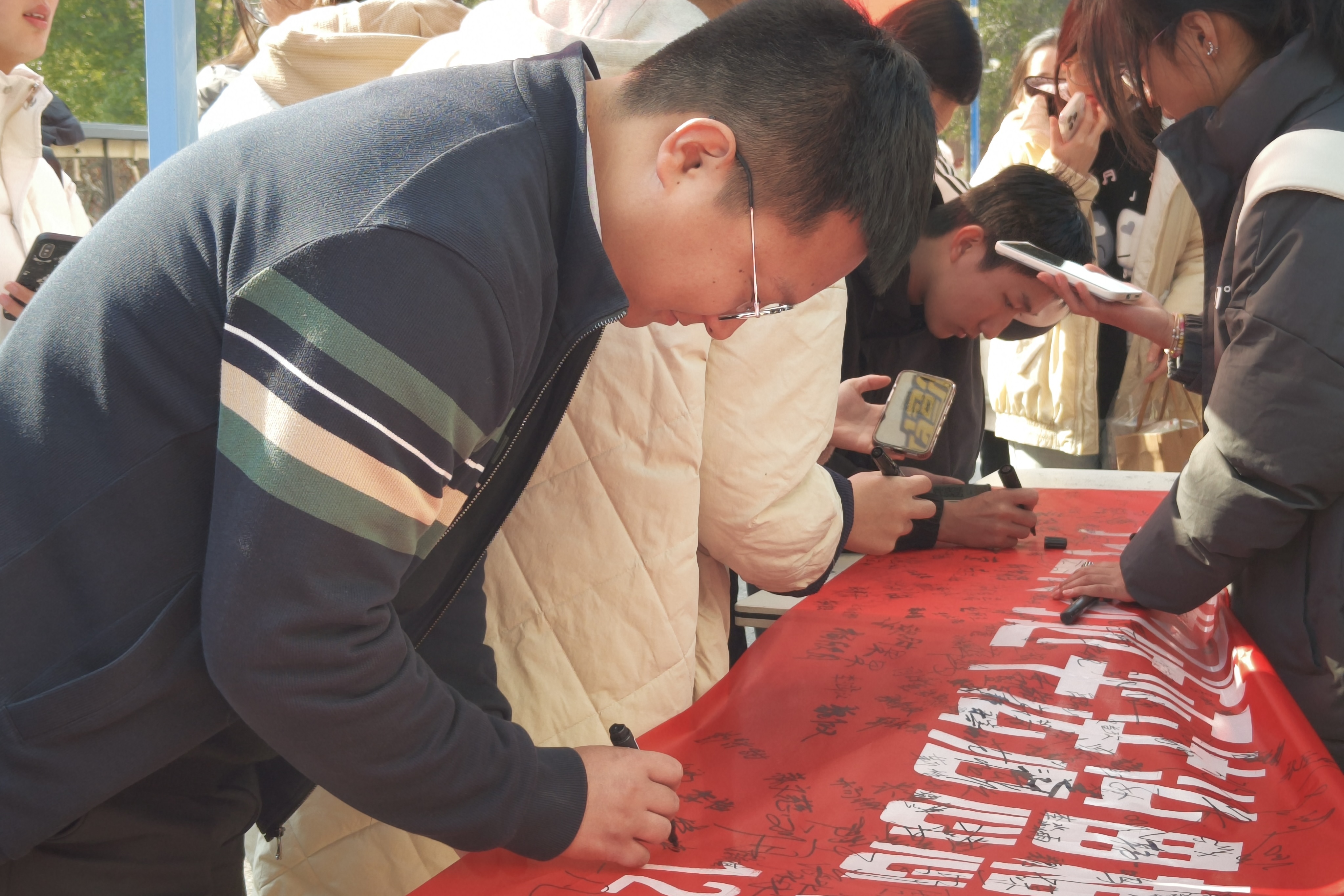 针对学生们关心关注的问题,“宪法”宣讲员开展“面对面”答疑解惑,现场气氛热烈,同学们纷纷拿起笔,在横幅上郑重签下自己的姓名,一笔一划间承载践行着对法治的尊崇与坚守,展示了新时代大学生“凝聚法治共识、传递责任担当”的价值情怀。