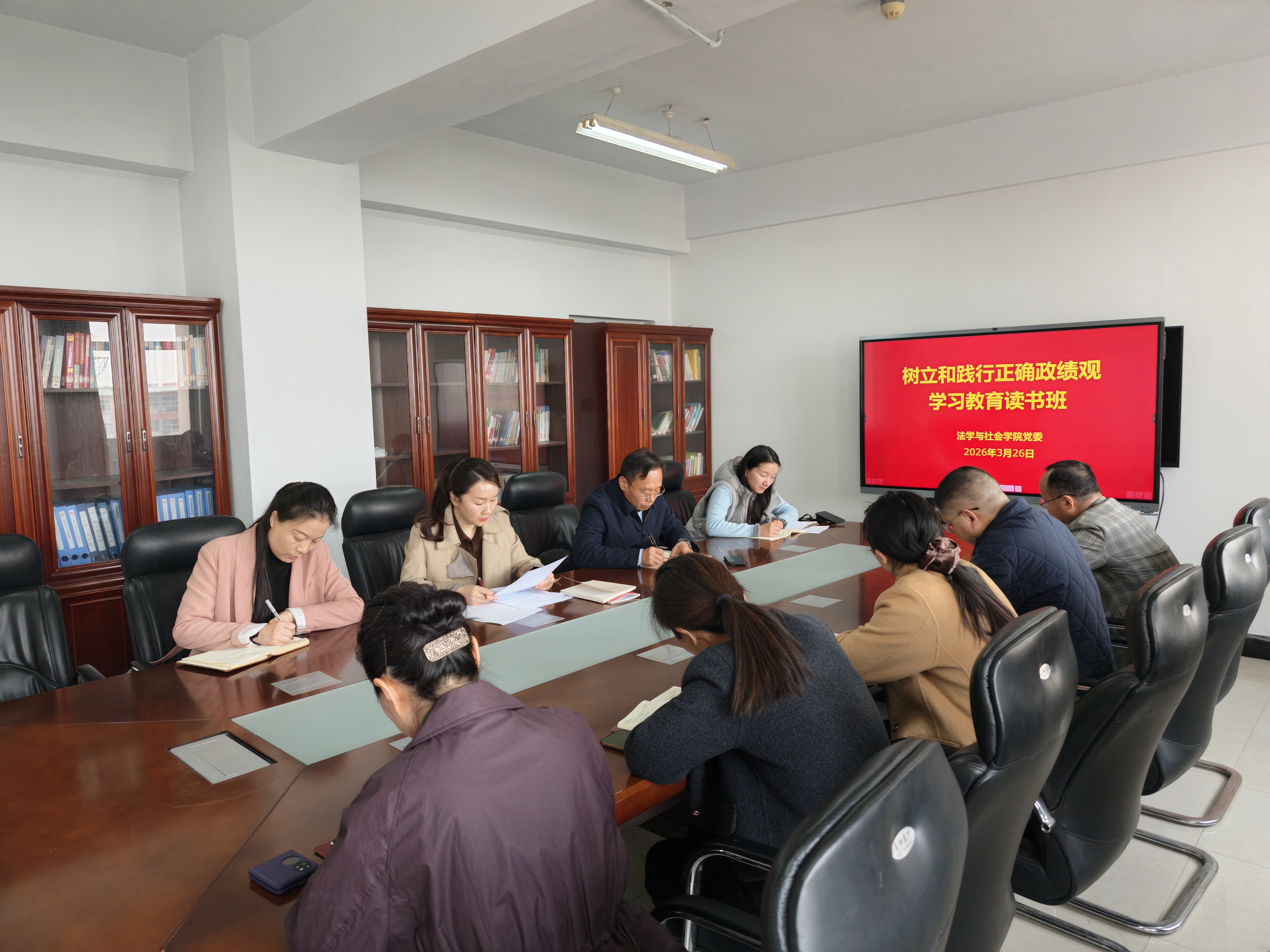 按照学校党委关于开展树立和践行正确政绩观学习教育工作安排,3月26日-27日,我院党委利用两天时间,采取领读领学、集中自学和交流研讨相结合的方式,举办树立和践行正确政绩观学习教育读书班。学院领导班子、学习教育工作专班成员参加学习。