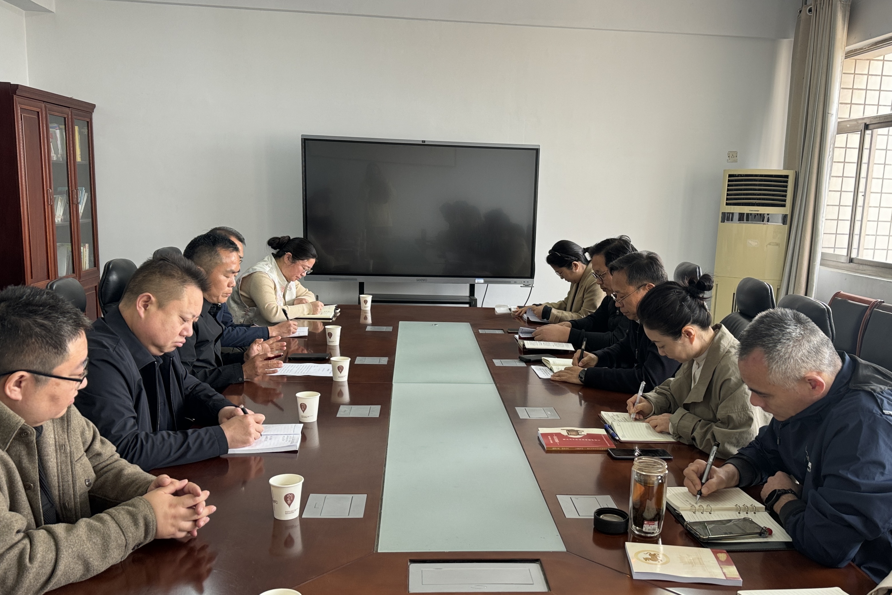 3月31日,商丘市司法局副局长李军一行莅临商丘师范学院法学与社会学院开展调研交流活动。学院领导班子成员付先召、朱艳接待了调研组,双方就校地合作、法治实践等议题展开了深入座谈,旨在推动法治商丘研究院的工作,共同促进商丘市的法治建设发展。市司法局部分科室负责人、研究院成员代表以及学院教师代表参加了此次座谈。