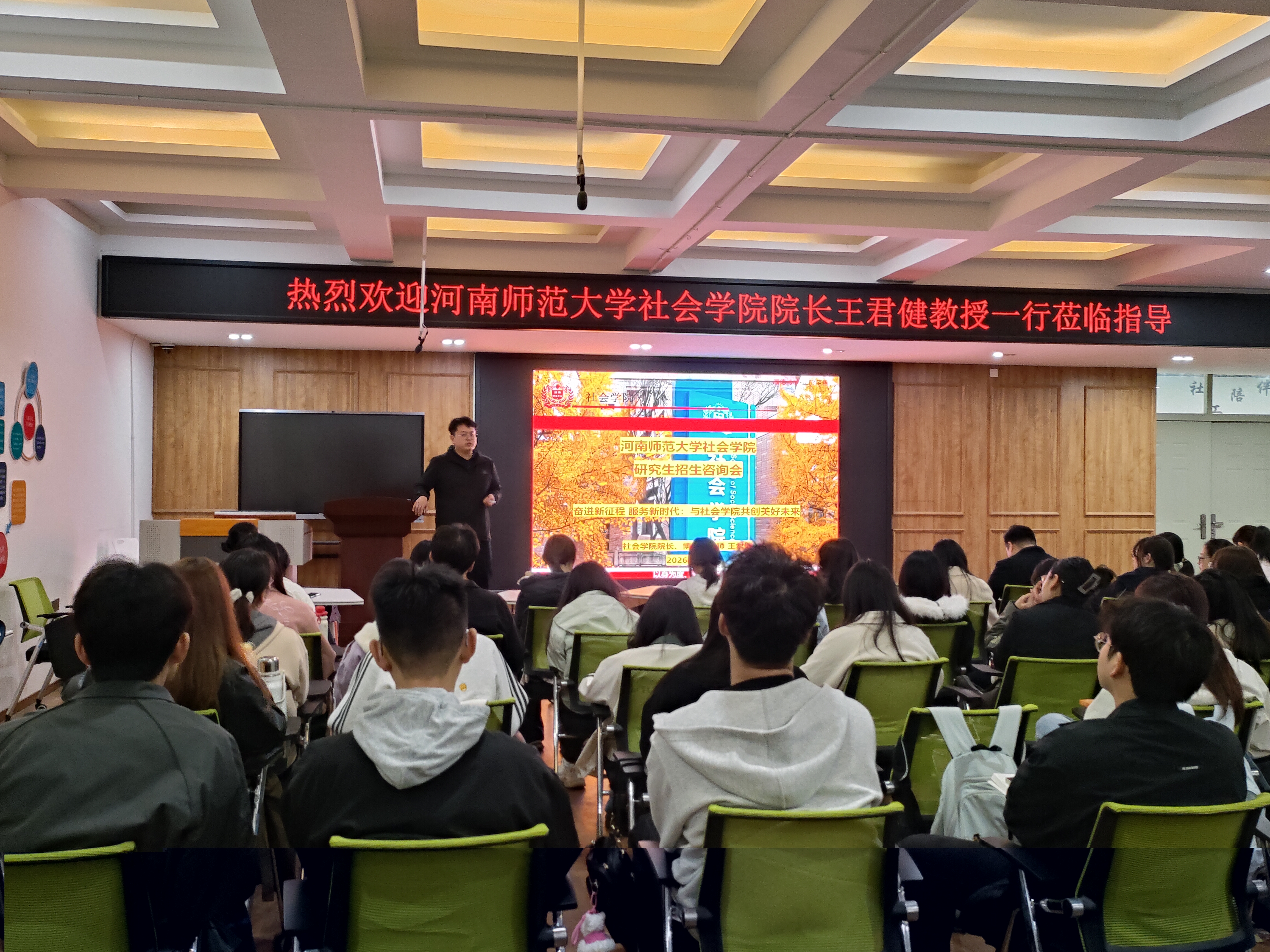 为进一步强化校际交流与合作,搭建考研升学的交流平台,助力社会工作专业学生明确考研方向、了解研究生招生政策,4月8日下午,河南师范大学社会学院研究生招生宣讲活动于行方楼234成功举办。河南师范大学社会学院院长王君健、社会工作系主任杨威威亲临现场开展招生宣讲,我院领导班子成员王庆、付先召、朱艳出席此次活动,社会工作系师生参与了本次活动。